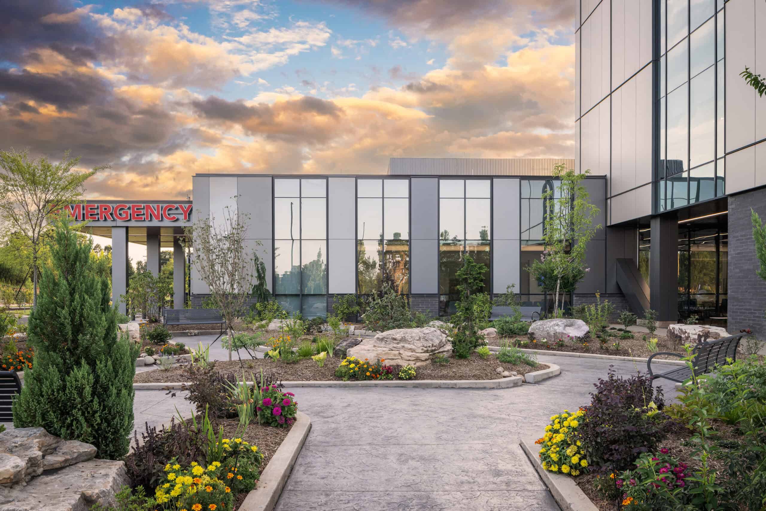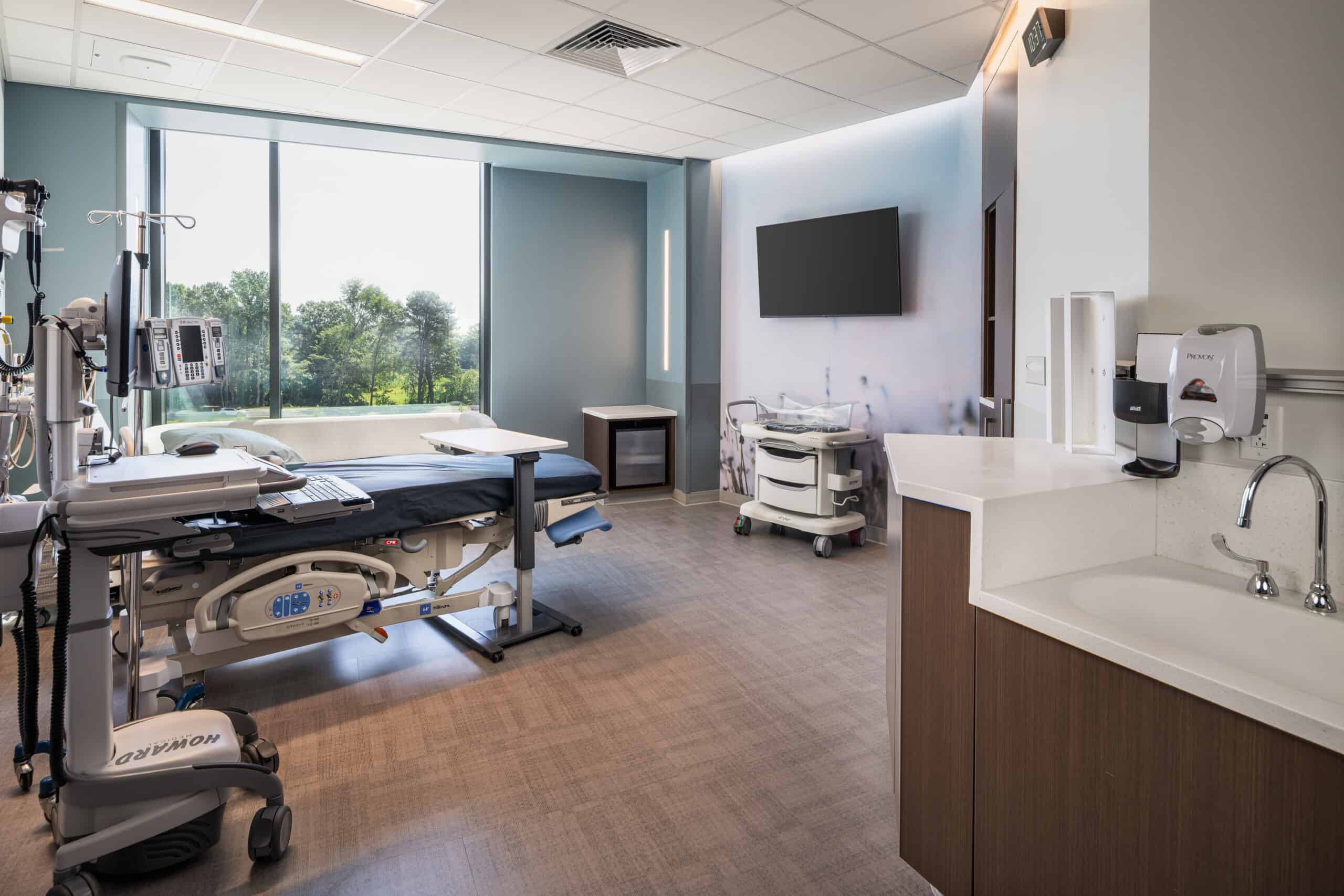 Designed with the community in mind, the nearly 200,000-square-foot, five-floor, state-of-the-art hospital features a 24/7 emergency room, dozens of inpatient beds, labor and delivery floor, operating and procedure rooms, imaging, lab and pharmacy. The building also features the latest technology, including secure virtual nursing capabilities and in-room dining service, as well as a healing garden and art installations from local artists.