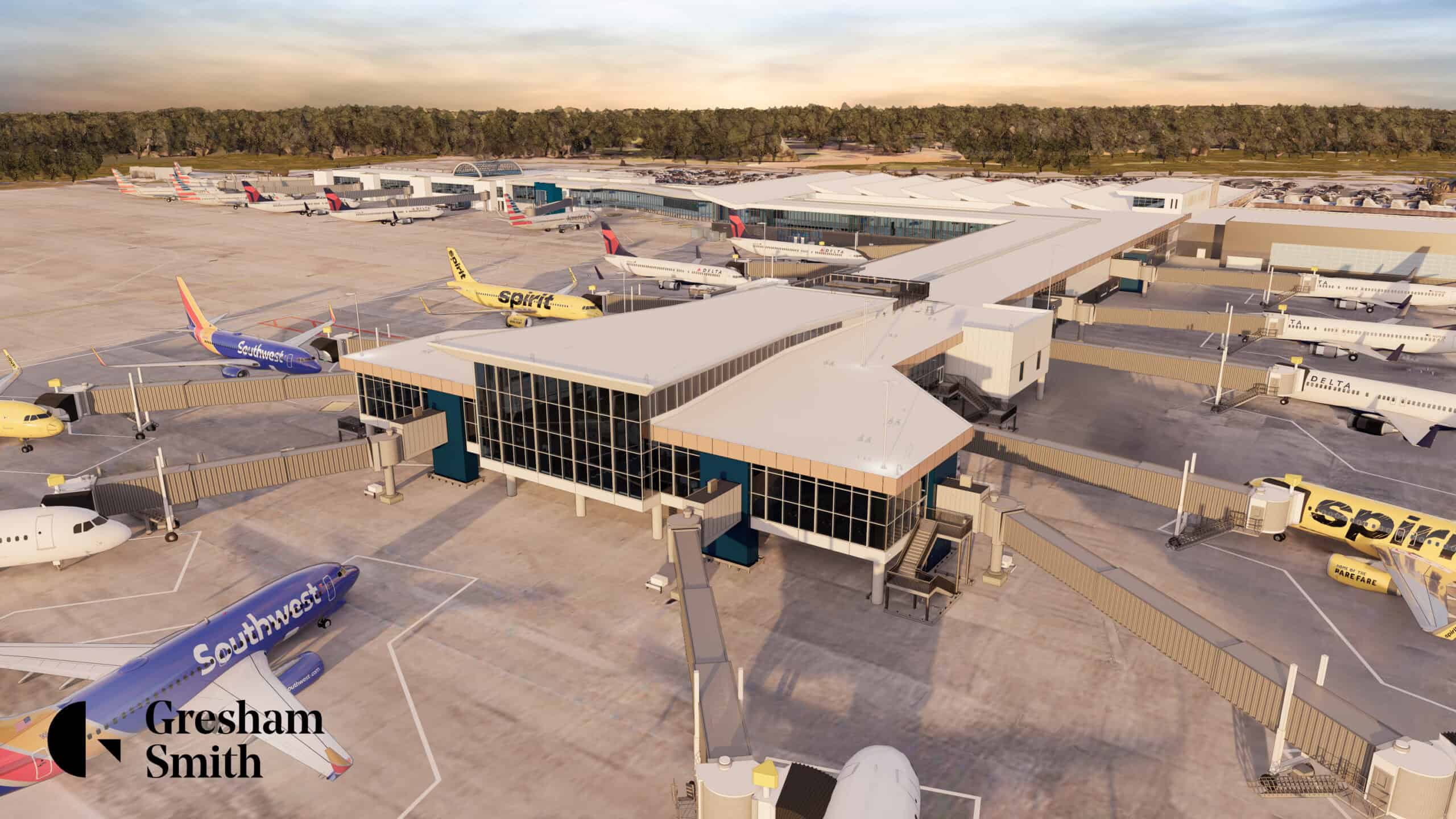 The Concourse A 50,000-square-foot expansion will add six new gates, with an option for a seventh to the A Concourse, while modernizing the 12 existing gates on the A & B Concourses. The project will also introduce new restroom facilities, concessions, and hold rooms to support the increased gate capacity. To ensure gates become operational as quickly as possible, the team expedited the preconstruction phase. A detailed plan to keep all existing jet bridges in service during the peak tourism season was included.