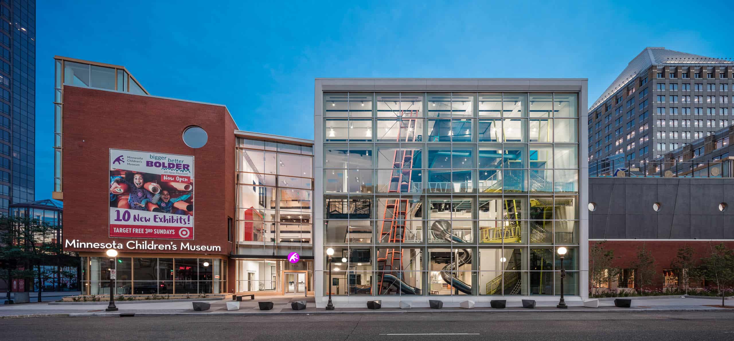 Consistently rated as one of the top children’s museums in the country, the re-imagined museum helps children develop essential skills they need to succeed. New exhibits cultivate skills such as critical thinking, communication, coordination and creative thinking. The project features 40% expansion of gallery space, a new multi-story climbing structure, new café, creative office space, and transformed public atrium. The project includes comprehensive remodeling of 67,000 square feet of space, phased over 16 months to allow the museum to remain open throughout construction. Complex funding was provided by a multitude of sources including donors, state bonding, new market tax credits and operating funds. This exciting expansion has allowed the museum to successfully accommodate their growing attendance of approximately 500,000 visitors per year and fulfill their mission of “sparking learning through play”.