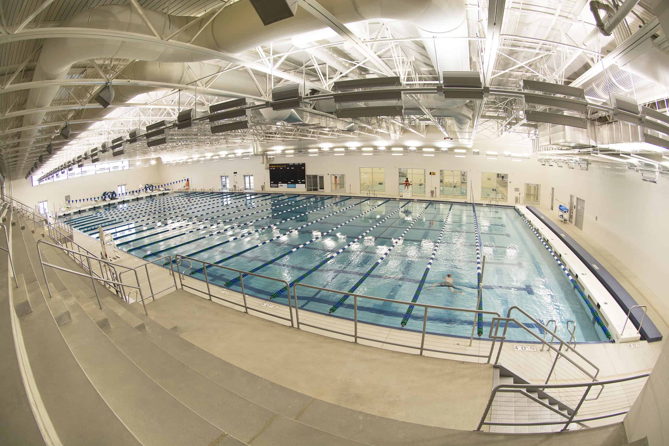 The City of Williston, North Dakota, hired JE Dunn to build their new recreation center. The 267,000-square-foot facility includes a 50-meter, 8-lane swimming pool, four basketball courts, four indoor tennis courts, an indoor gymnasium with a 200-meter running track that can accommodate high jump and pole vaulting, two racquetball courts, a golf simulator, 54,000-square-foot fitness area, locker rooms, four meeting rooms, and new offices for the Williston Parks and Recreation Department.