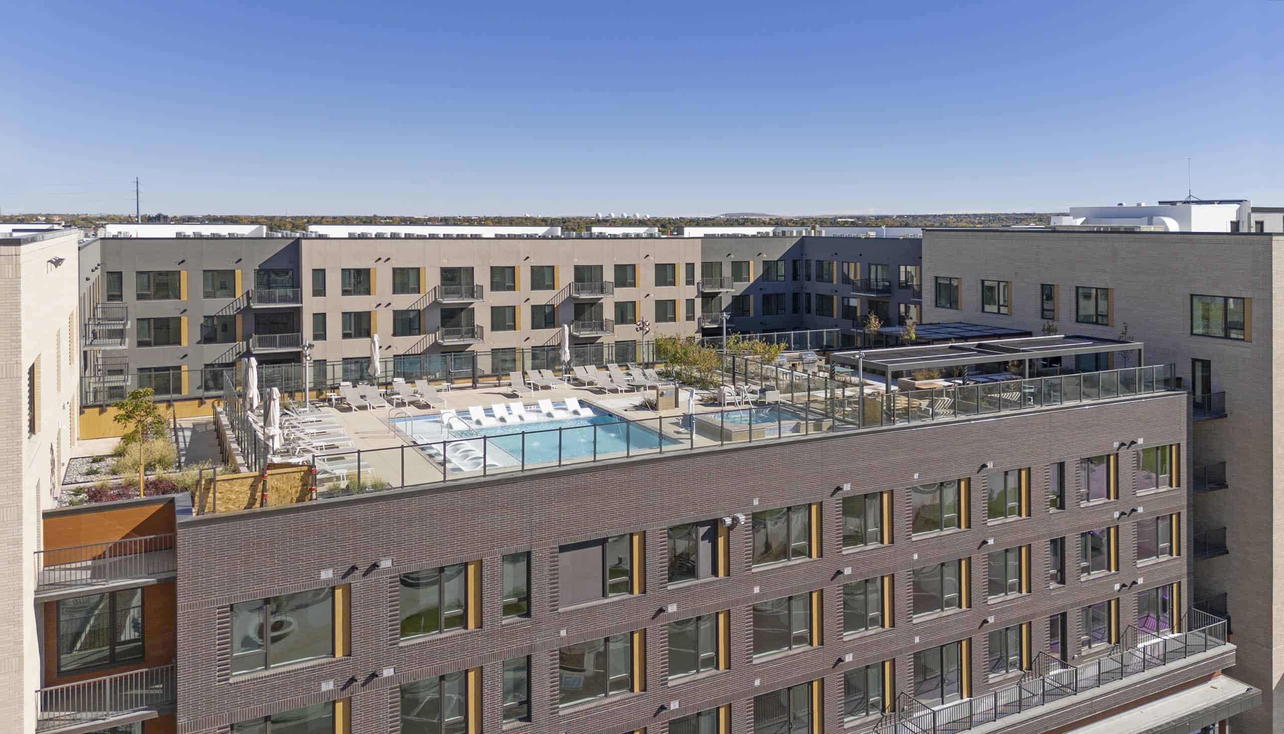 This apartment community features 370 residential units and a 439-stall parking garage spanning levels one through seven. Residents will enjoy an array of upscale amenities, including a rooftop pool, courtyard gathering spaces, and thoughtfully enhanced interiors.