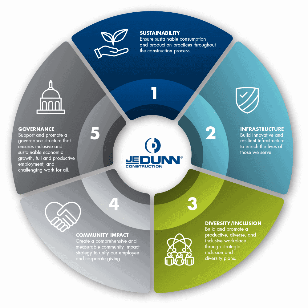 This report is about our commitment to continuous improvement in every part of business. A commitment that is shared and has been adopted at all levels of the company including executive leadership and the Board of Directors. JE Dunn’s Environmental, Social, and Governance (ESG) report reflects a promise to our clients, employees, and community to provide the highest possible level of excellence, integrity, transparency, and accountability.