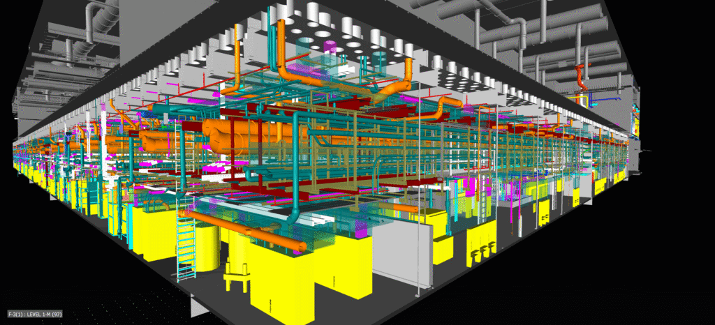 Our team utilized Building Information Modeling (BIM) for routing 24” stainless steel piping through this active semiconductor facility, ensuring minimal conflicts throughout design and construction. We employed delegated design for support steel, enhancing the precision and efficiency of the installation process. In the end, our team achieved a flawless safety record with zero incidents, highlighting the effectiveness of BIM in planning and execution.