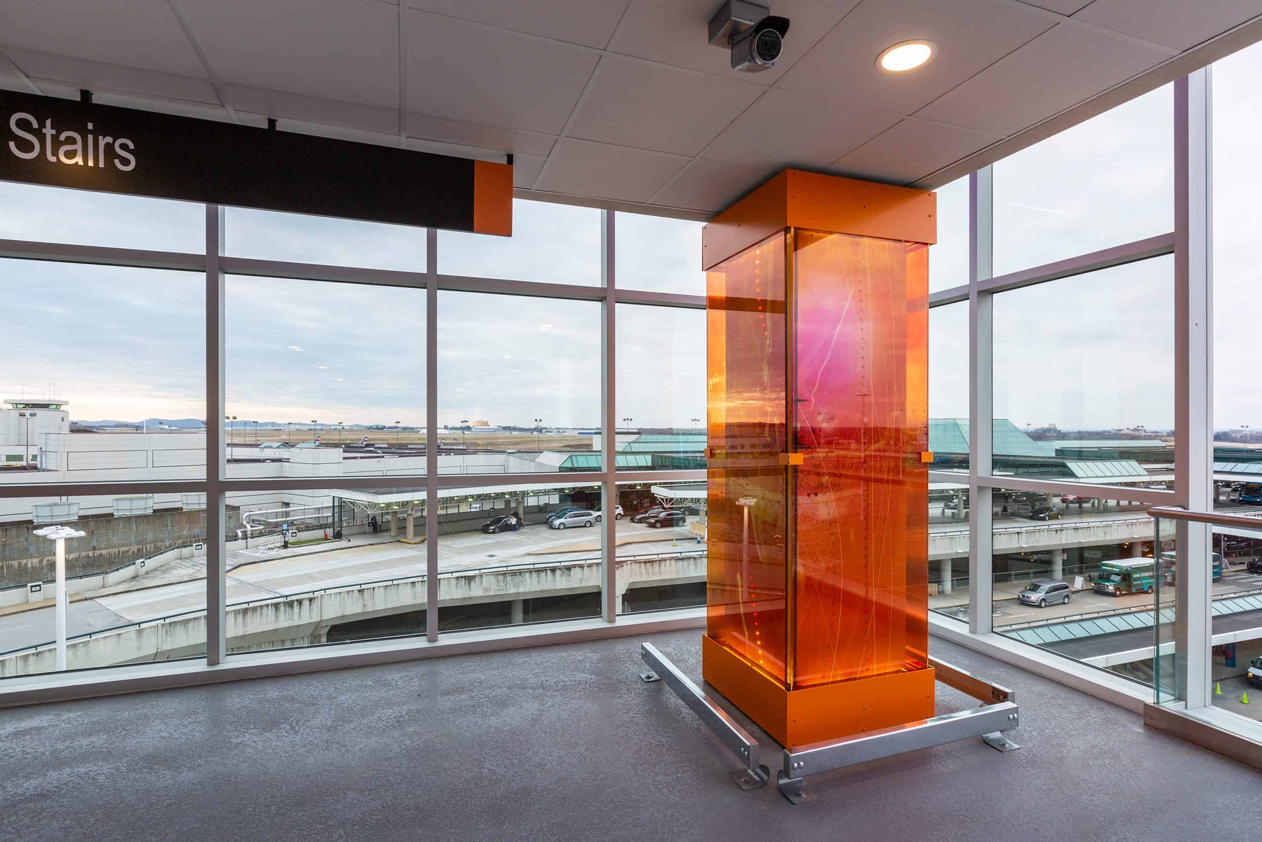 The 6-story garage features a variety of modern conveniences including: parking space guidance system, electric vehicle charging stations, tire inflation station, vehicle locator kiosks, pay-on-foot kiosks, and more. The garage includes a fully covered top tier to prevent the airport from needing to plow snow or mitigate ice for the building’s 50-year life span. Two pedestrian canopies allow visitors to walk from the new garage and the CONRAC to the Terminal while remaining shielded from the weather.