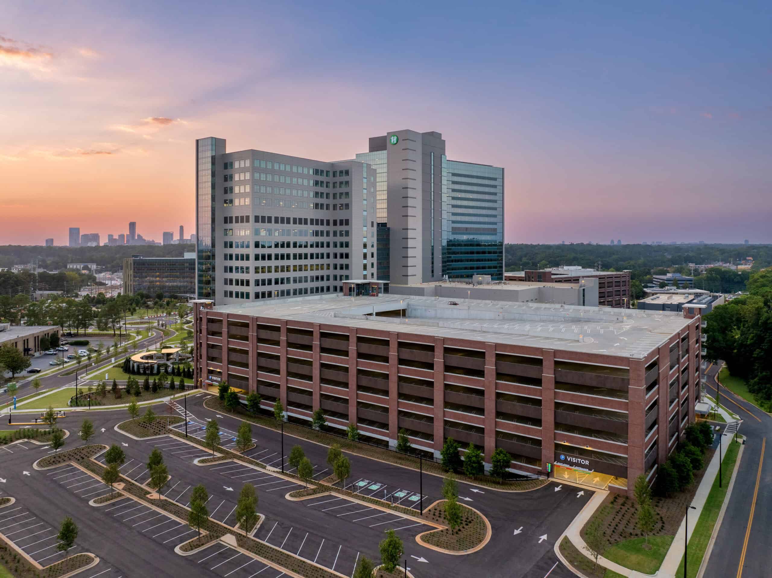 JE Dunn Construction played a key role in redeveloping a 47-acre site for the new Children’s Healthcare of Atlanta North Druid Hills Replacement Campus, home to the Arthur M. Blank Hospital. While another contractor led construction of the 1.5 million square foot main hospital, JE Dunn managed the construction of approximately 515,000-square-foot, 16-story Pediatric Clinic Building that connects directly to the hospital. This facility includes specialized clinics such as bone marrow transplant, cardiac care, dialysis, and HemOnc, hospital administration, GME space, simulation labs, and physician support areas.