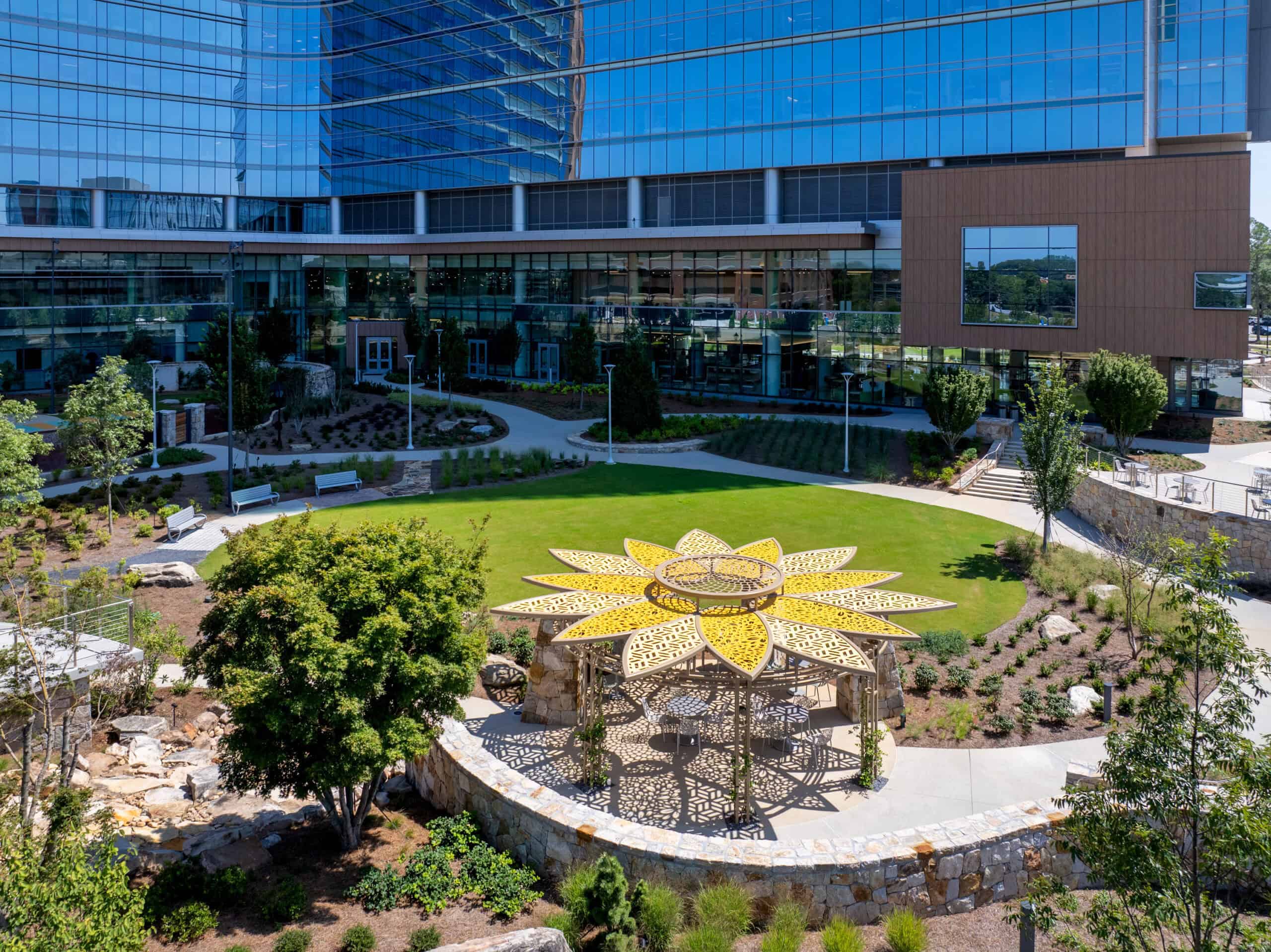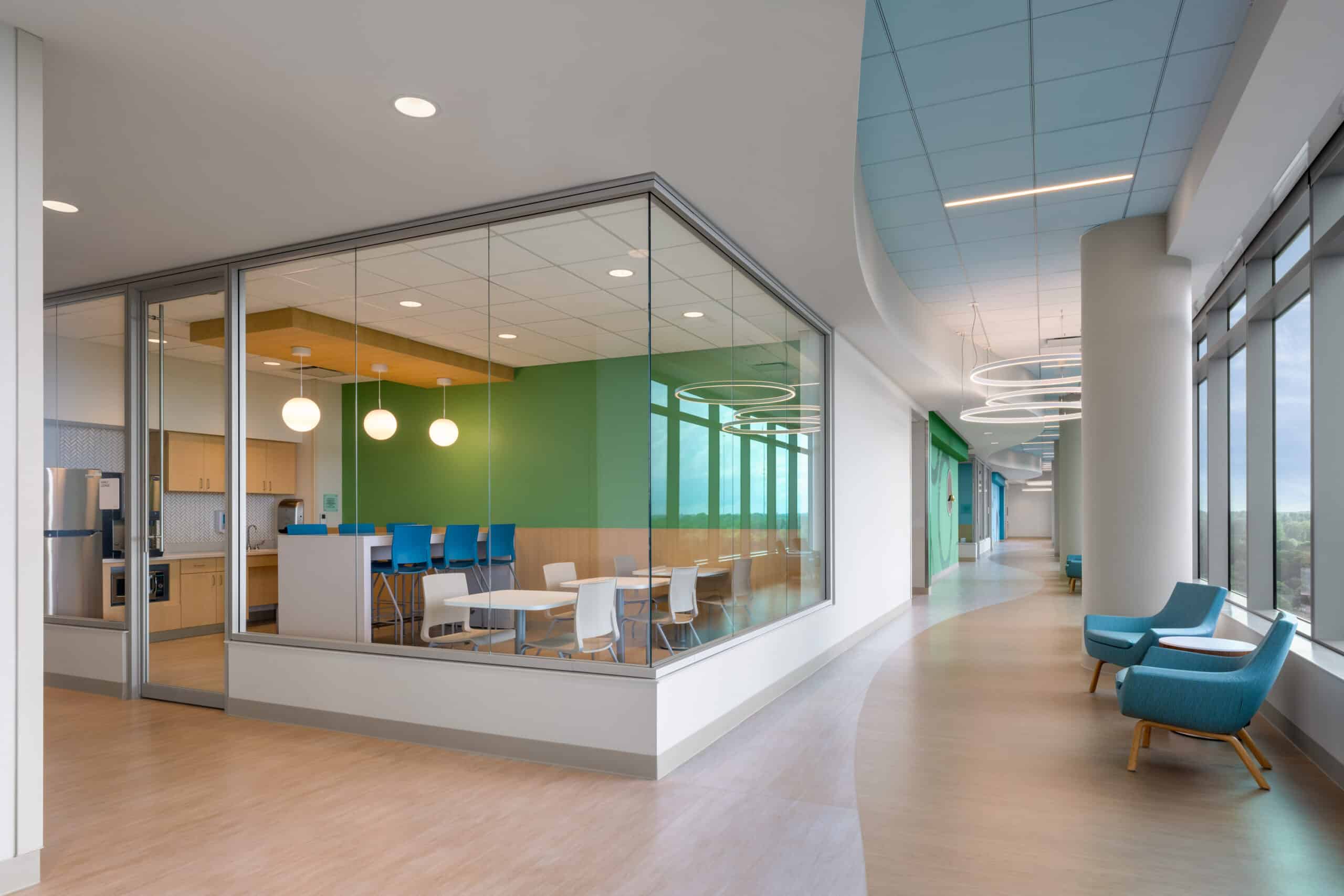 The project also included comprehensive site development across the 70-acre campus, featuring over 20 acres of greenspace, healing gardens, walking trails, water features, and extensive landscape and hardscape work. JE Dunn’s contributions were instrumental in creating a modern, patient-centered pediatric healthcare environment.