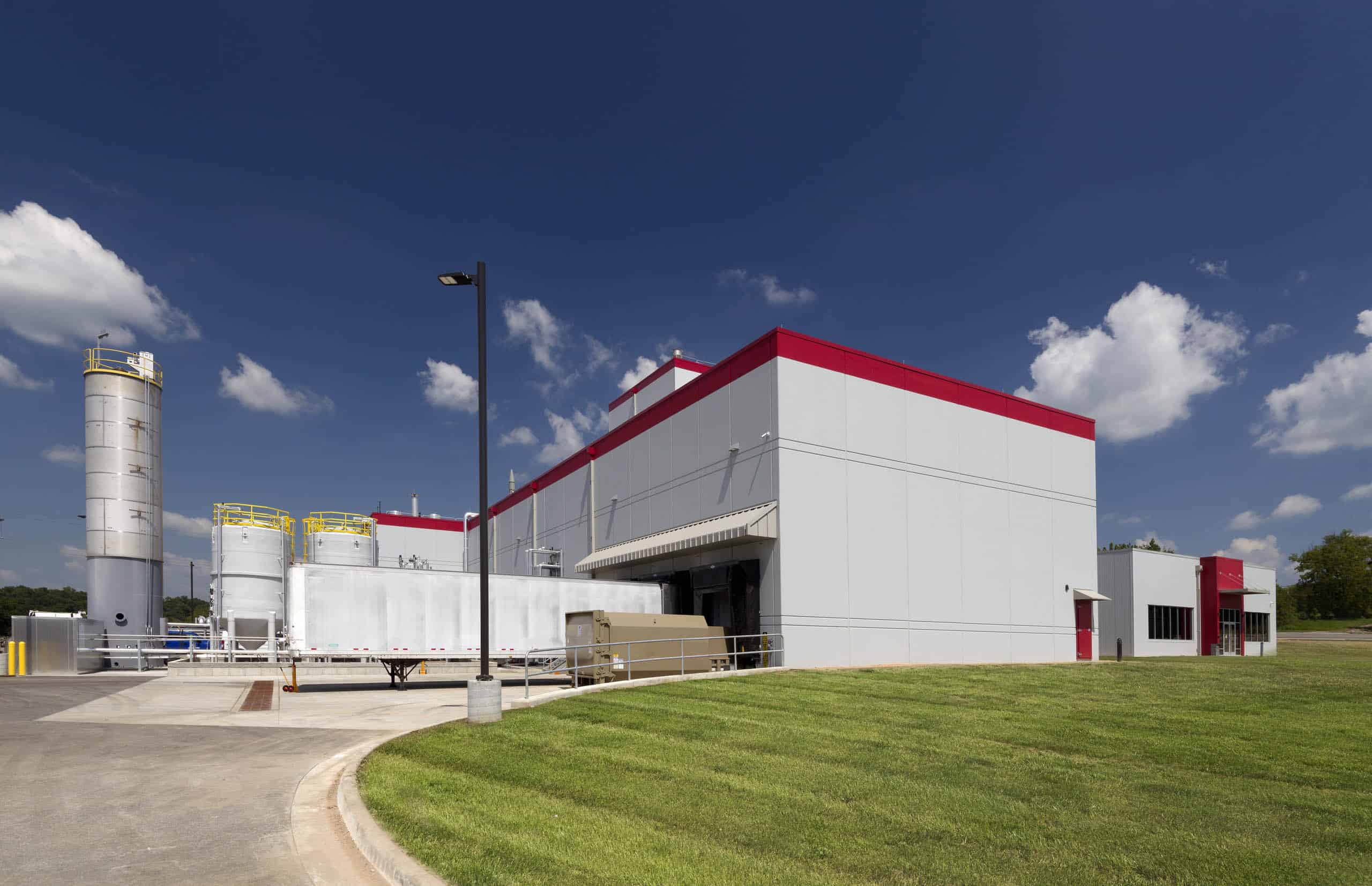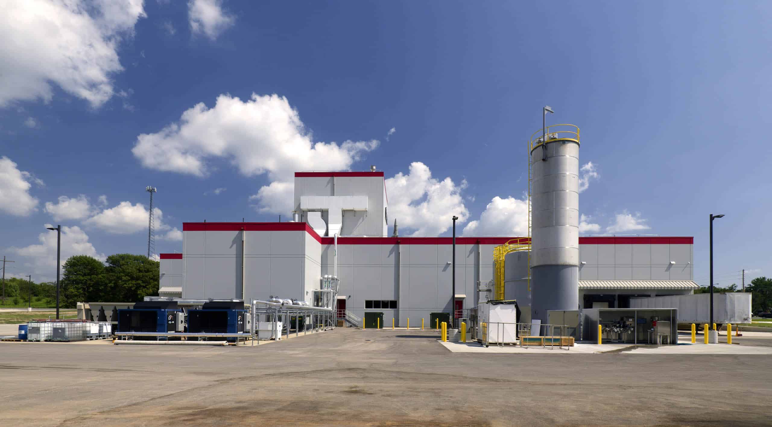 Outside the building, there is a 100,000-gallon storage tank for fire sprinkler water and a wastewater treatment facility that treats process water before it re-enters the municipal water system.