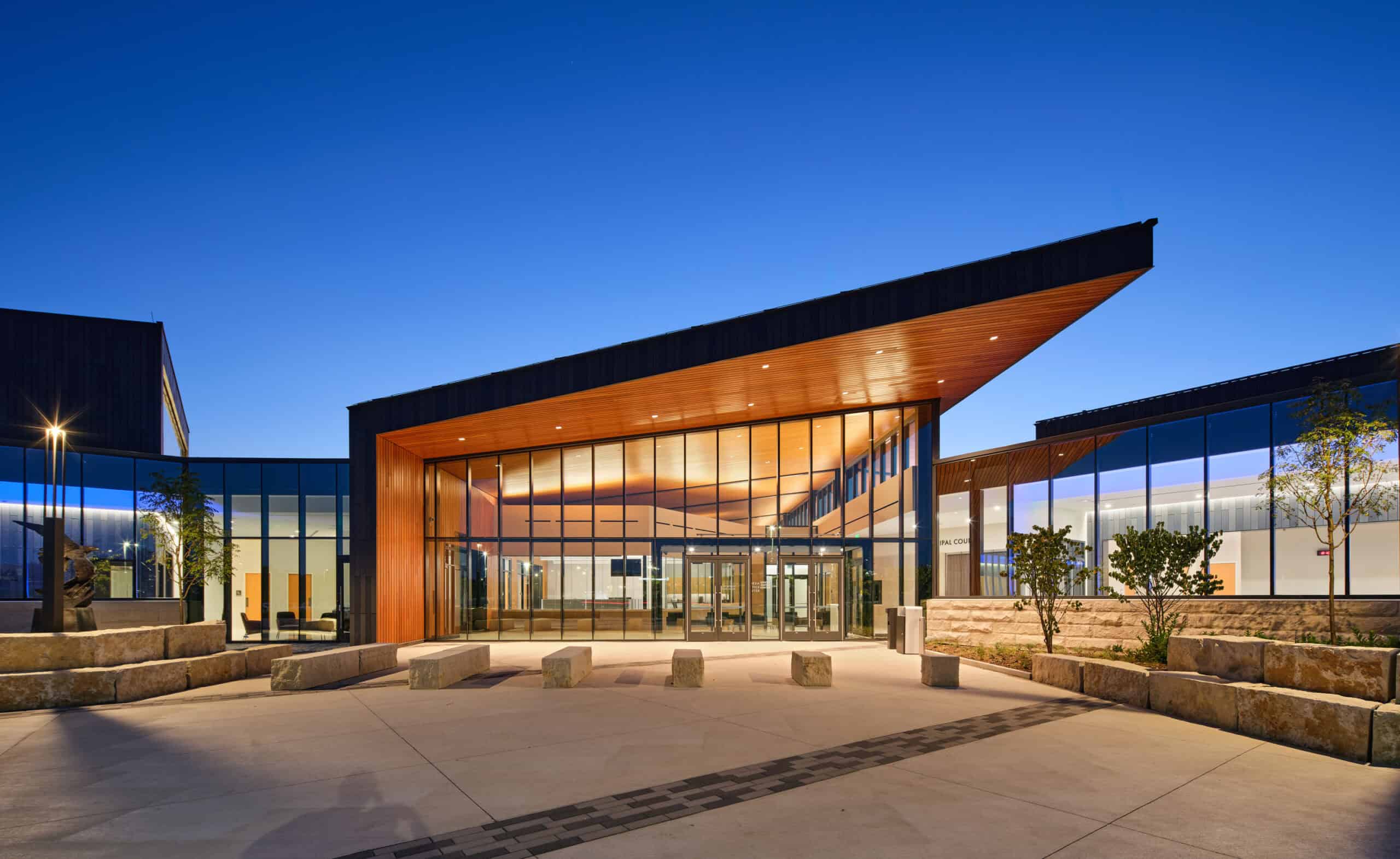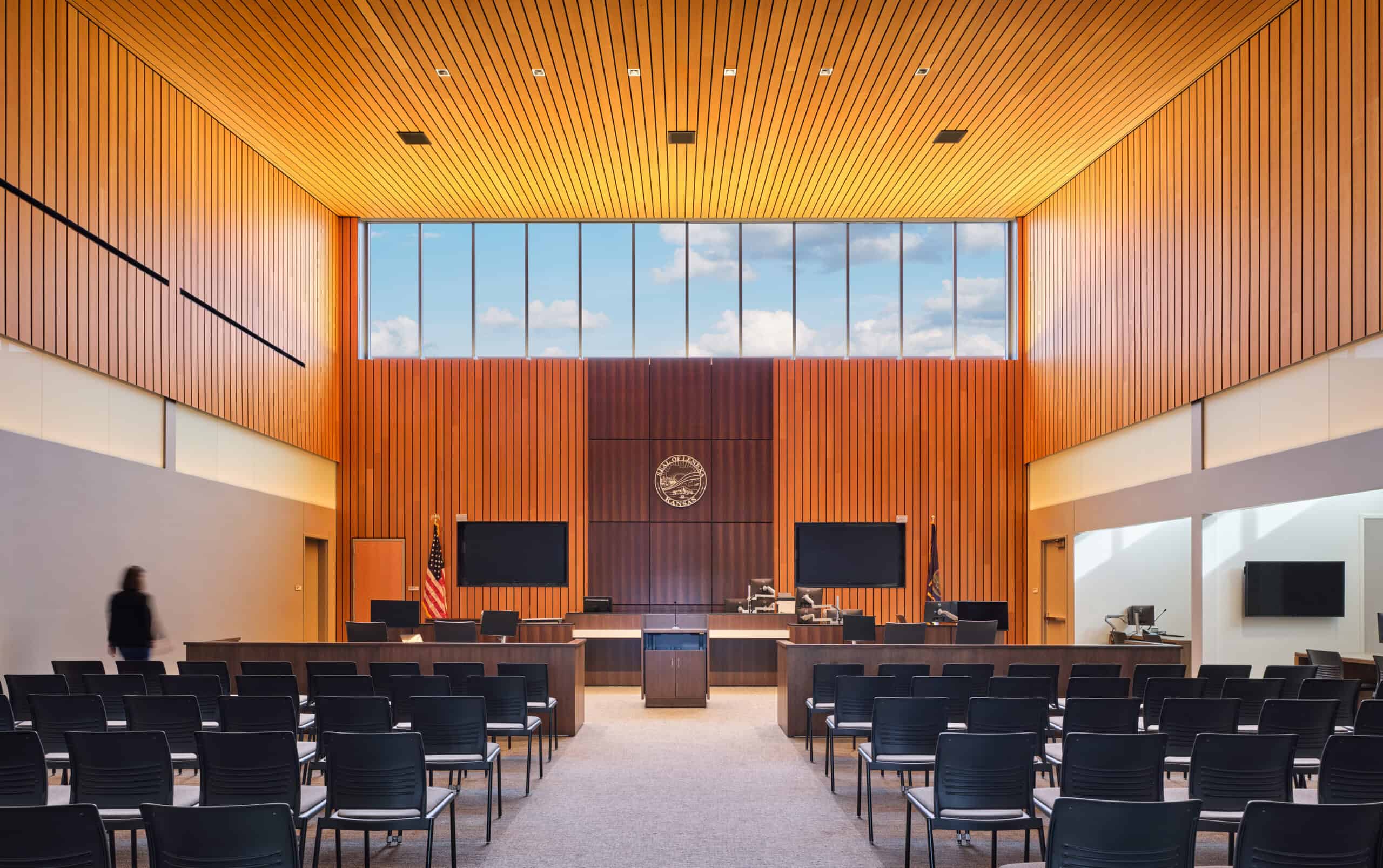The new justice center sits on 13.5 acres and consists of a two-story, 100,000-square-foot main building and a single-story, 23,000-square-foot training building.