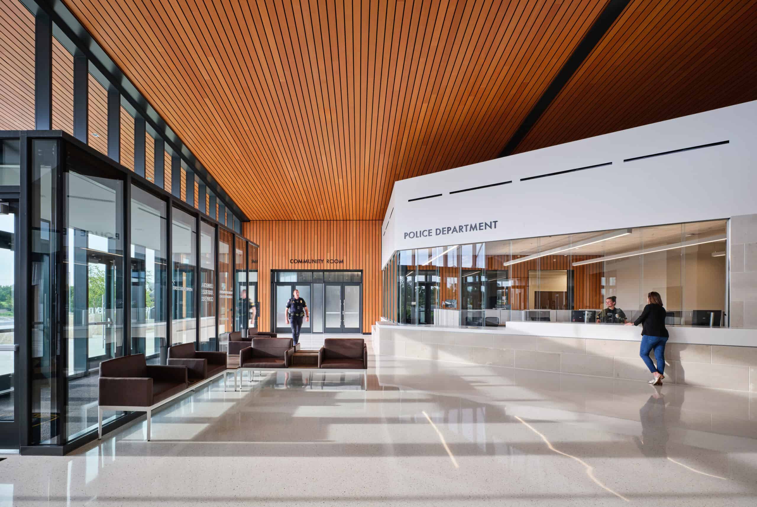 The new facilities will serve the police department and include a municipal court, 911 mission critical communications, a public lobby, community room, detective, patrol and traffic officer work spaces, training rooms and vehicle storage areas. Officer training space includes classrooms, a fitness center and locker rooms, defense and weapons training.