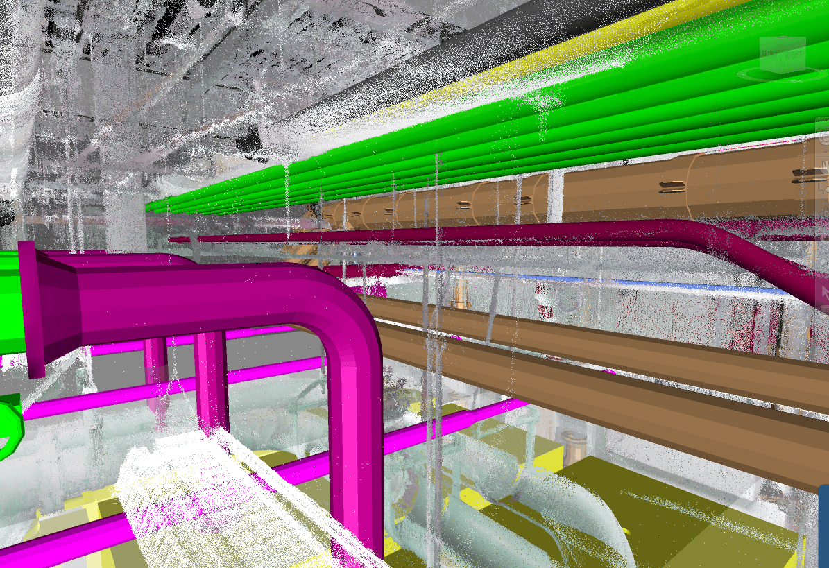 Image 1: This image shows gas connections for future phase 2 boilers that are overlayed on the existing condition of the laser scan.