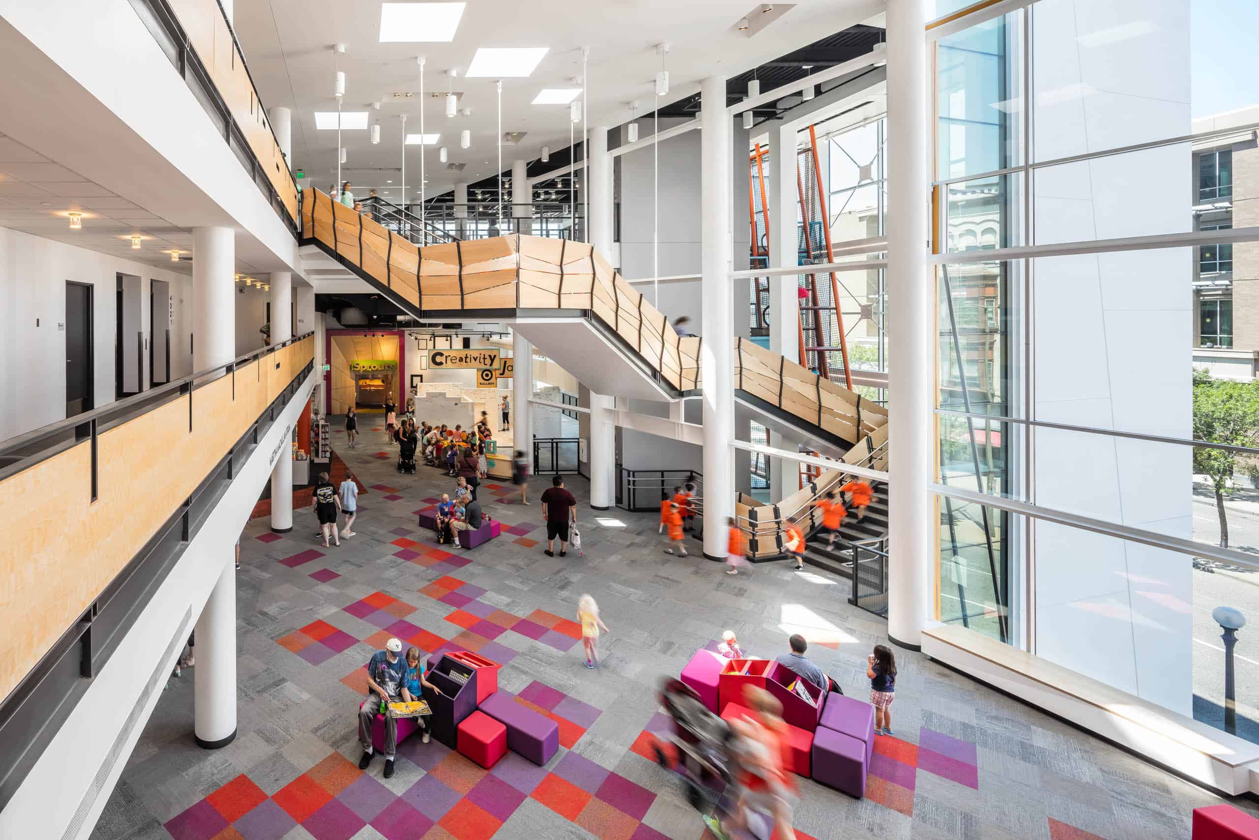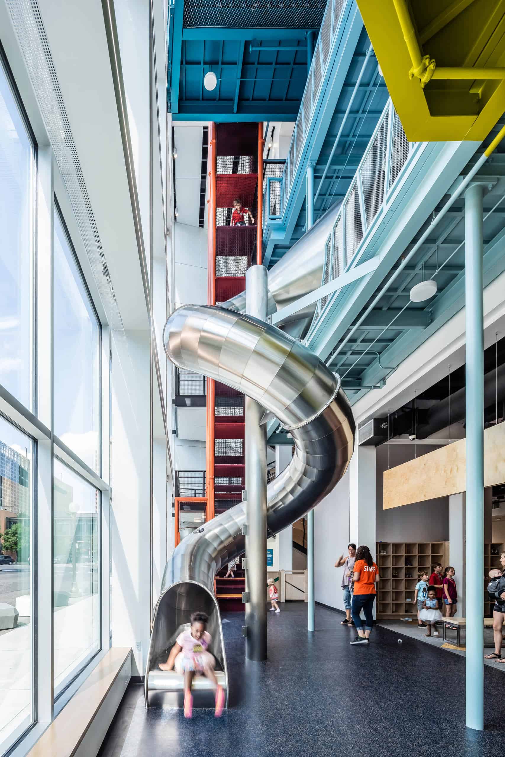 Consistently rated as one of the top children’s museums in the country, the re-imagined museum helps children develop essential skills they need to succeed. New exhibits cultivate skills such as critical thinking, communication, coordination and creative thinking. The project features 40% expansion of gallery space, a new multi-story climbing structure, new café, creative office space, and transformed public atrium. The project includes comprehensive remodeling of 67,000 square feet of space, phased over 16 months to allow the museum to remain open throughout construction. Complex funding was provided by a multitude of sources including donors, state bonding, new market tax credits and operating funds. This exciting expansion has allowed the museum to successfully accommodate their growing attendance of approximately 500,000 visitors per year and fulfill their mission of “sparking learning through play”.