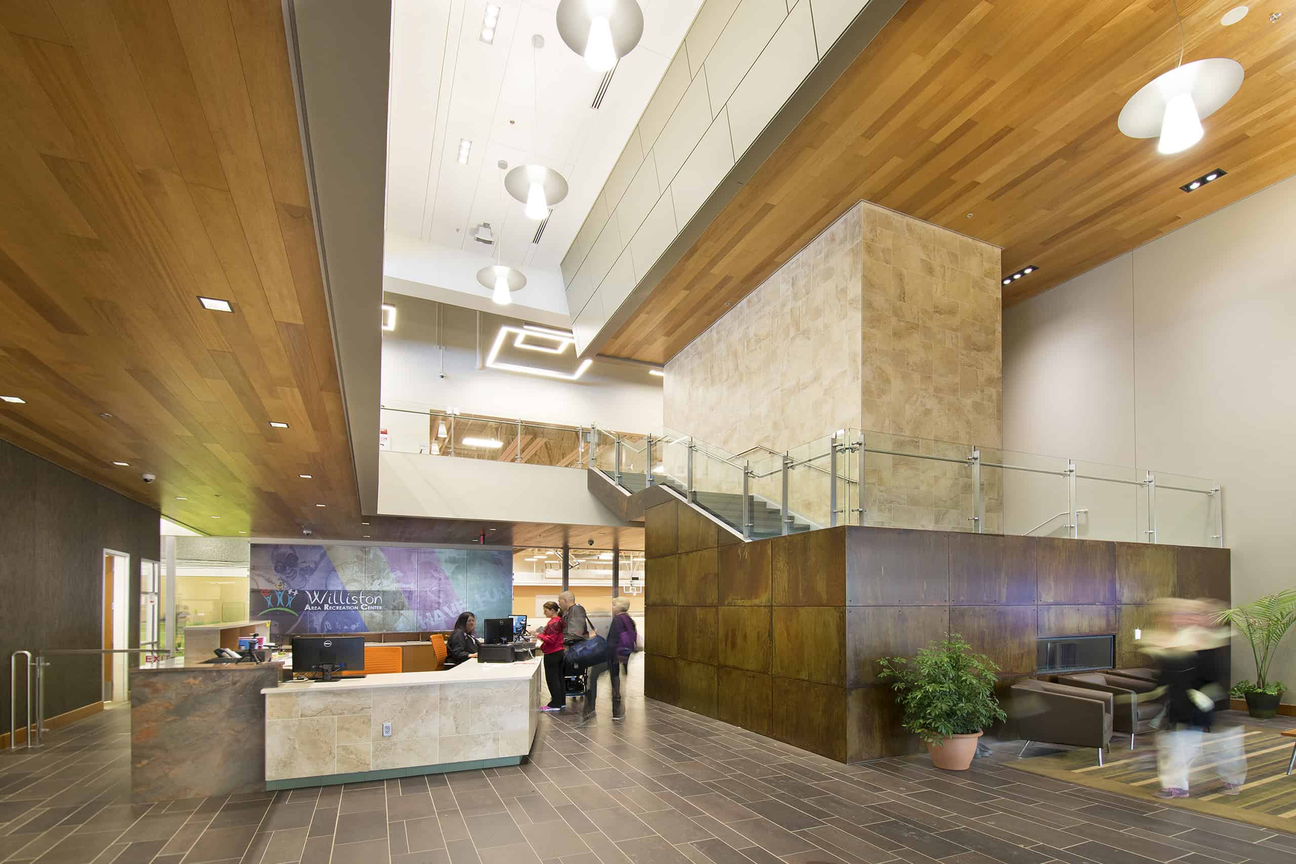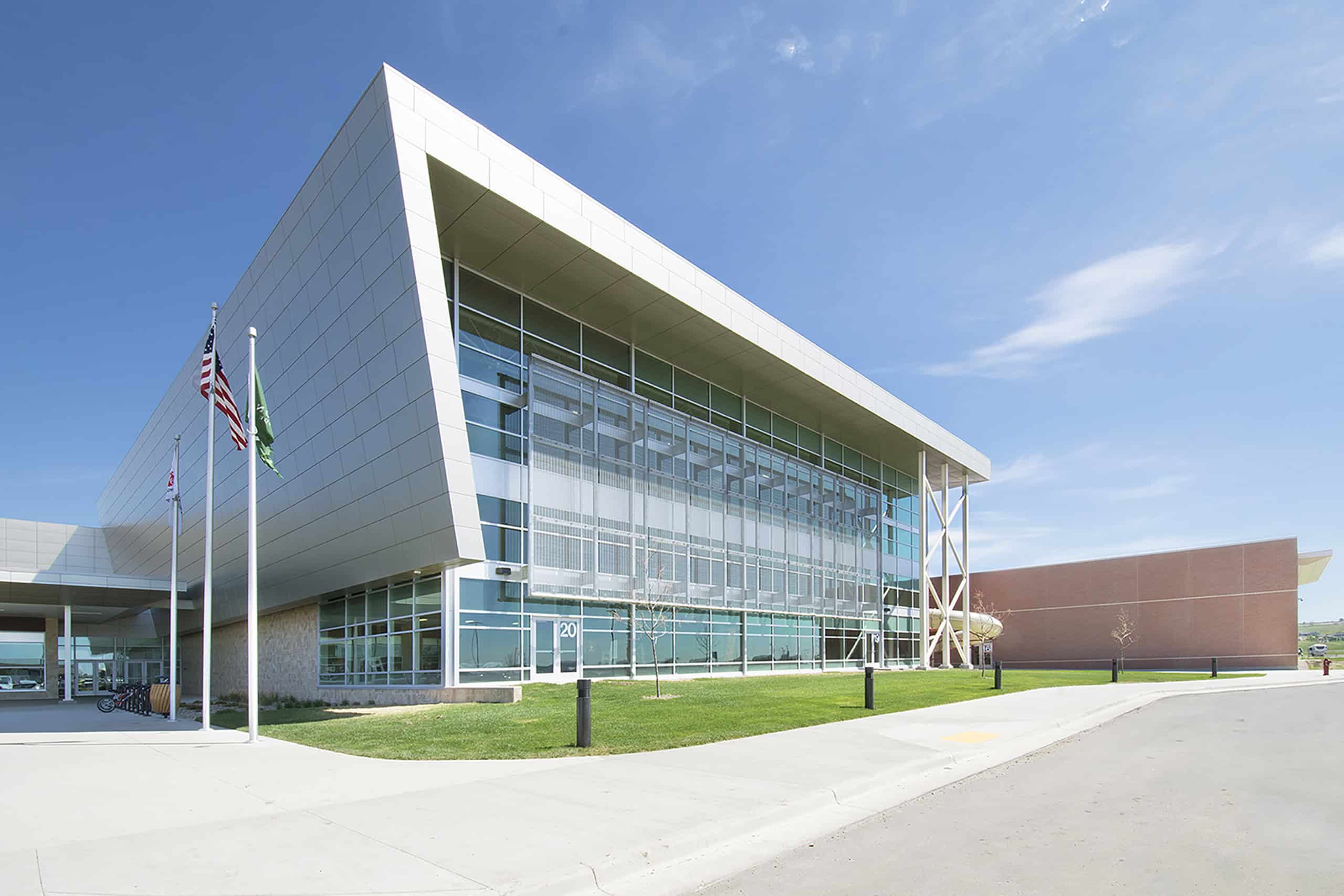 The City of Williston, North Dakota, hired JE Dunn to build their new recreation center. The 267,000-square-foot facility includes a 50-meter, 8-lane swimming pool, four basketball courts, four indoor tennis courts, an indoor gymnasium with a 200-meter running track that can accommodate high jump and pole vaulting, two racquetball courts, a golf simulator, 54,000-square-foot fitness area, locker rooms, four meeting rooms, and new offices for the Williston Parks and Recreation Department.