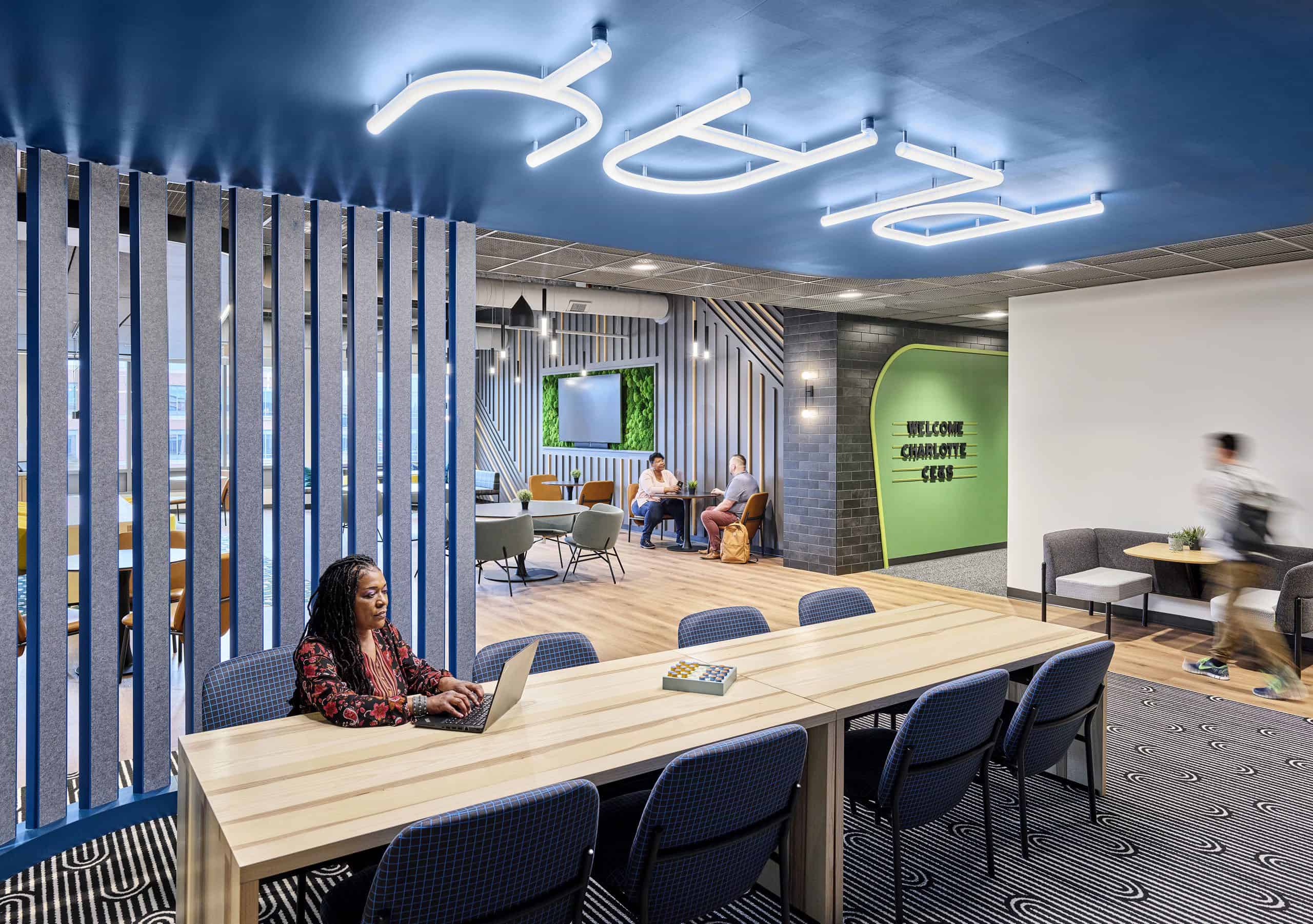 JE Dunn completed this 48,000-square-foot interior buildout of the 4th Floor AP2 Building to support the expansion of Microsoft Corporation’s Charlotte campus. JE Dunn upgraded the original building systems to modern standards in one of the first significant renovations/expansions to the campus in over 20 years. The finished space can accommodate more than 300 workers with no assigned offices. In addition, JE Dunn added restrooms and upgraded the existing restrooms.