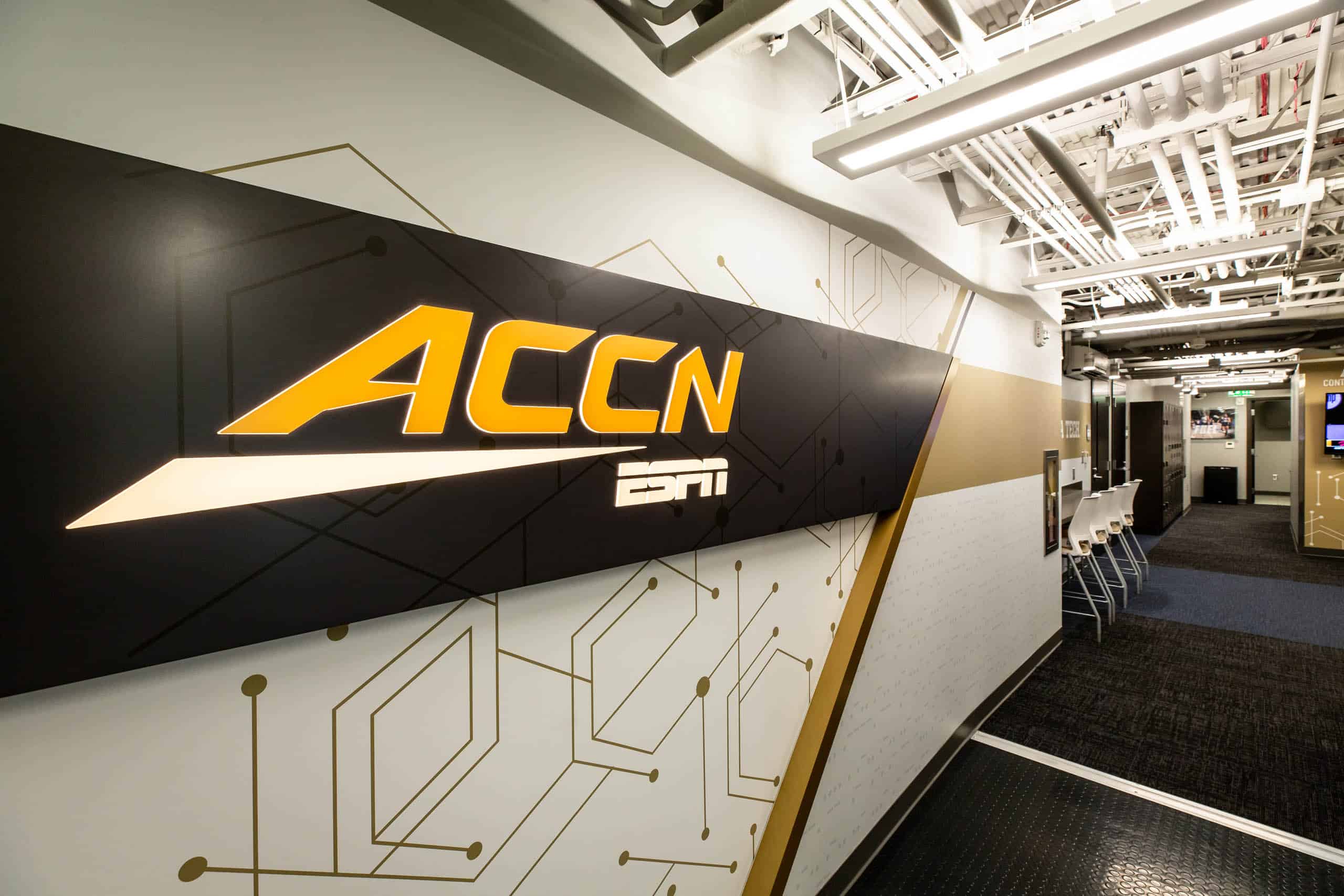 To prepare Georgia Tech for the Atlantic Coast Conference (ACC) to move their sports broadcasting from Raycom to the ACC Network, JE Dunn repurposed a 6,700 square foot facilities building, into a full-fledged broadcast studio. The space is fully equipped with UPS, fire alarm, structured cabling, broadcast cabling, access control, and a dimming system. Transmitting a network of this caliber requires high-quality efficiency, precision, and collaboration between all partners. When preparing for the design and construction of the Georgia Institute of Technology ACC Network Center, Georgia Tech selected JE Dunn and its Smart Building Solutions (SBS) team to implement a fully integrated operations system that would improve efficiency, reduce energy costs, and significantly enhance network operations.