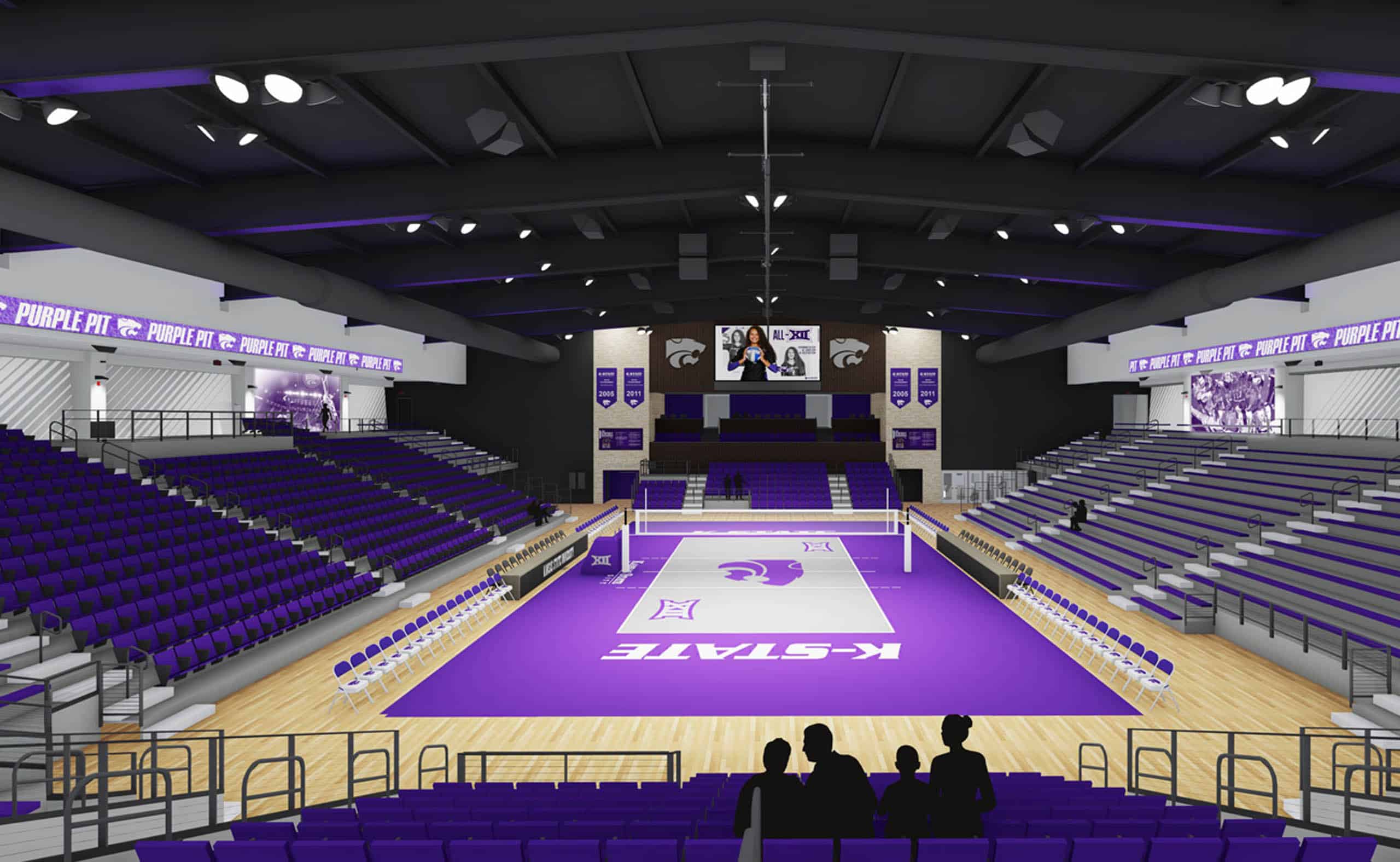 New climate controlled, purpose built arena for K-State volleyball, which includes 3,100 fixed seats. The unique seating bowl is constructed of a steel sandwich plate system (SBS) versus your traditional concrete structure. This lightweight, slim system allowed for unique aesthetics and quicker installation. Also included in this facility are two practice courts with retractable seating, two video boards, team meeting rooms, locker room, team theater and coaches’ offices.