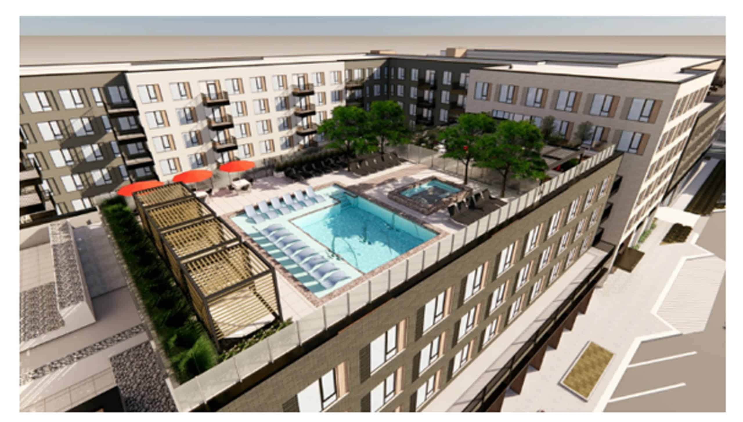 This apartment community features 370 residential units and a 439-stall parking garage spanning levels one through seven. Residents will enjoy an array of upscale amenities, including a rooftop pool, courtyard gathering spaces, and thoughtfully enhanced interiors.