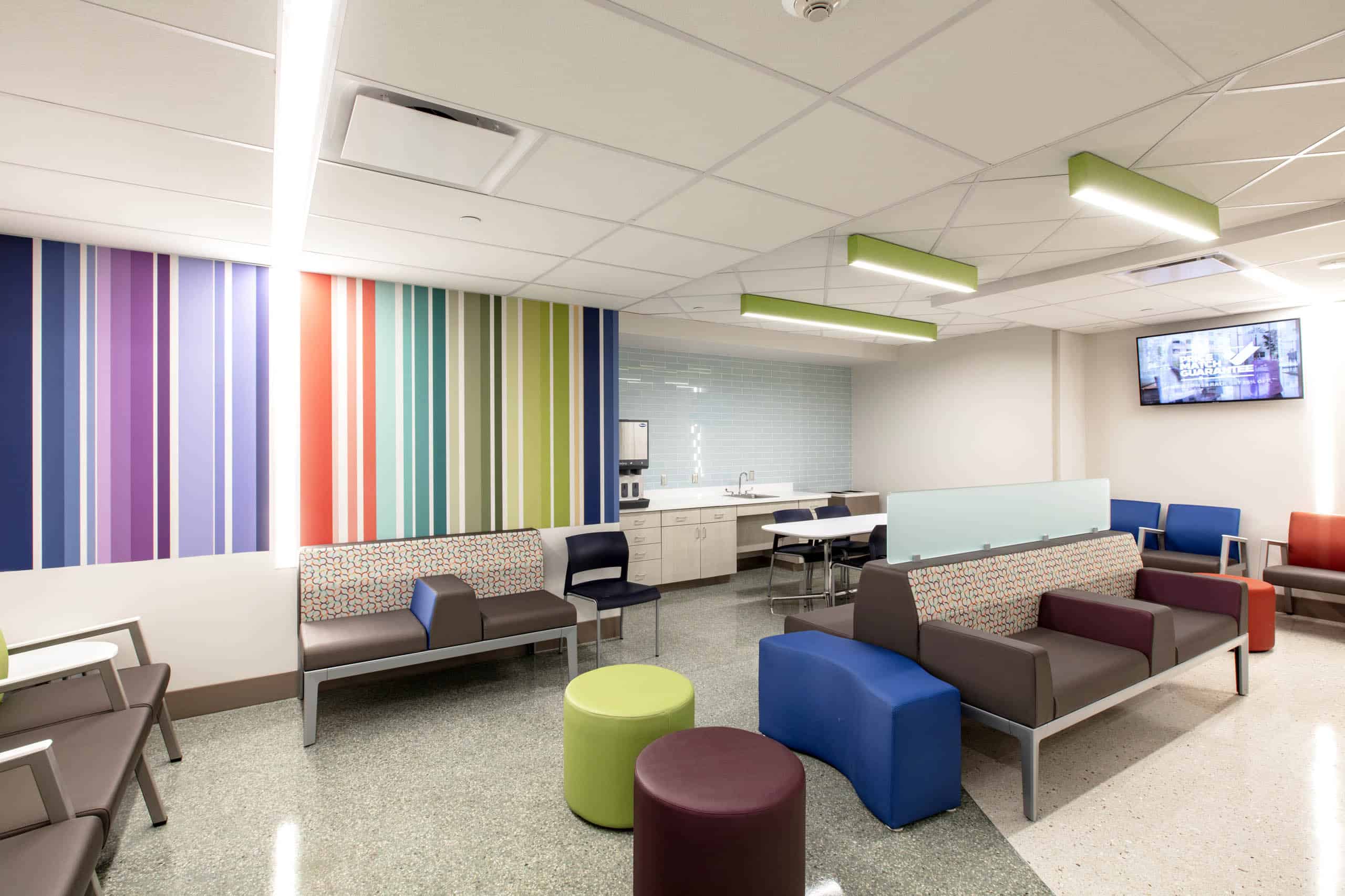 The renovated Pediatric Intensive Care Unit (PICU) at Oklahoma Children’s Hospital features 34 state-of-the-art beds on the 6th floor. The project involved demolishing 31,000 square feet of existing space and was completed in multiple phases while maintaining full hospital operations. Positioned between the active 7th-floor Neonatal Intensive Care Unit (NICU) and the 5th-floor Mother-Baby Unit, the PICU offers cutting-edge care for critically ill and injured children up to 18 years old. It stands as one of the most advanced and technologically sophisticated PICU facilities in Oklahoma and was the recipient of the AGC Build Oklahoma Award.