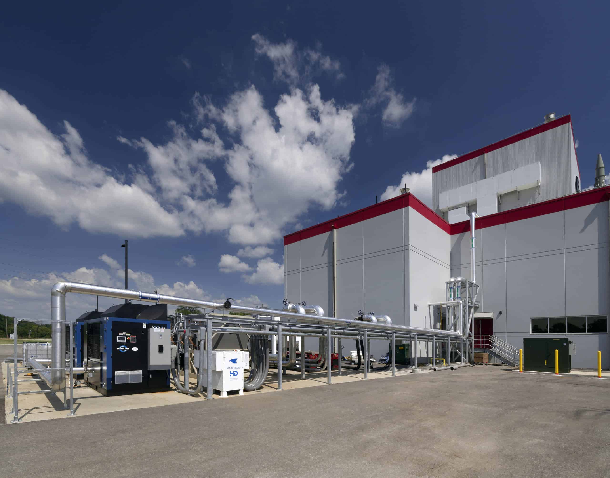 Outside the building, there is a 100,000-gallon storage tank for fire sprinkler water and a wastewater treatment facility that treats process water before it re-enters the municipal water system.