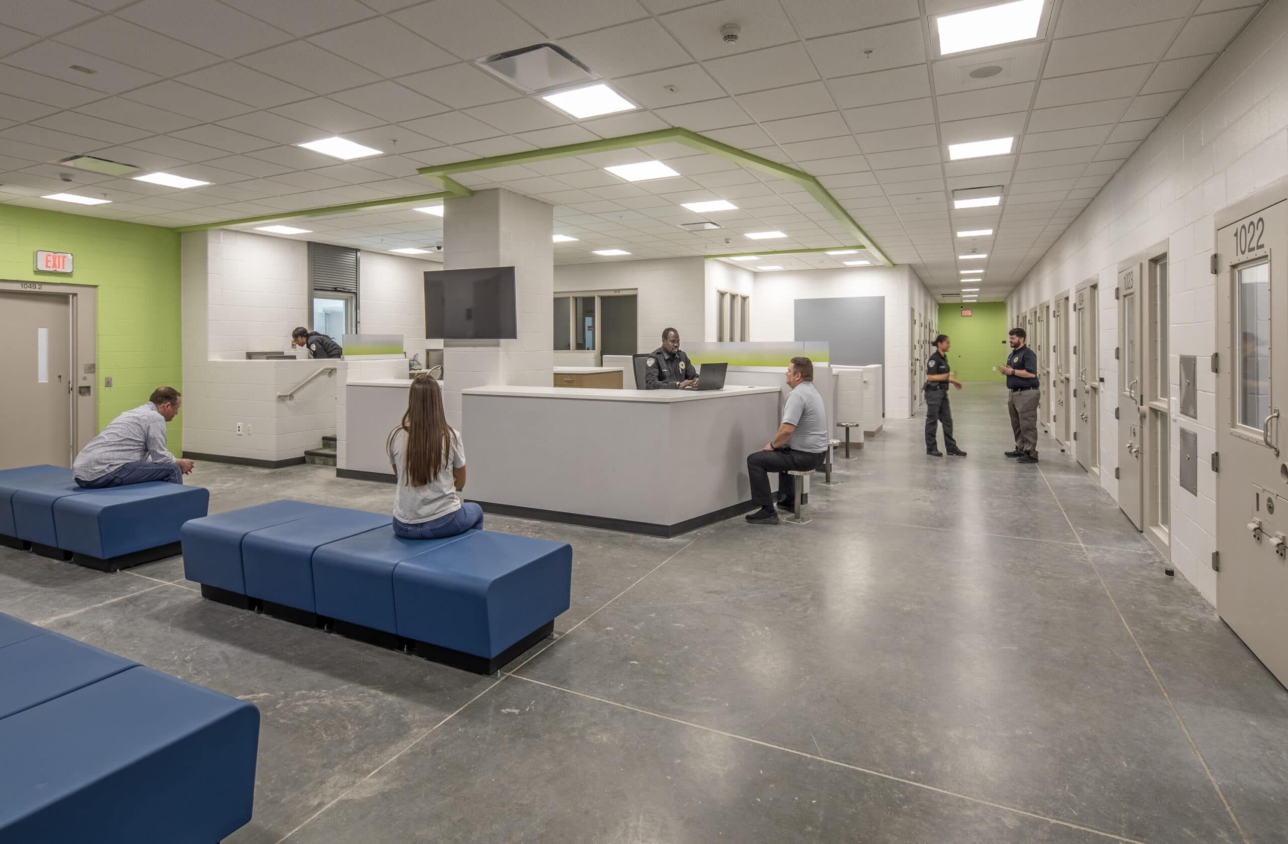The correctional facility has four unique cell types, precast concrete, precast steel, CMU (concrete masonry unit), and welded tension metal wall panel.