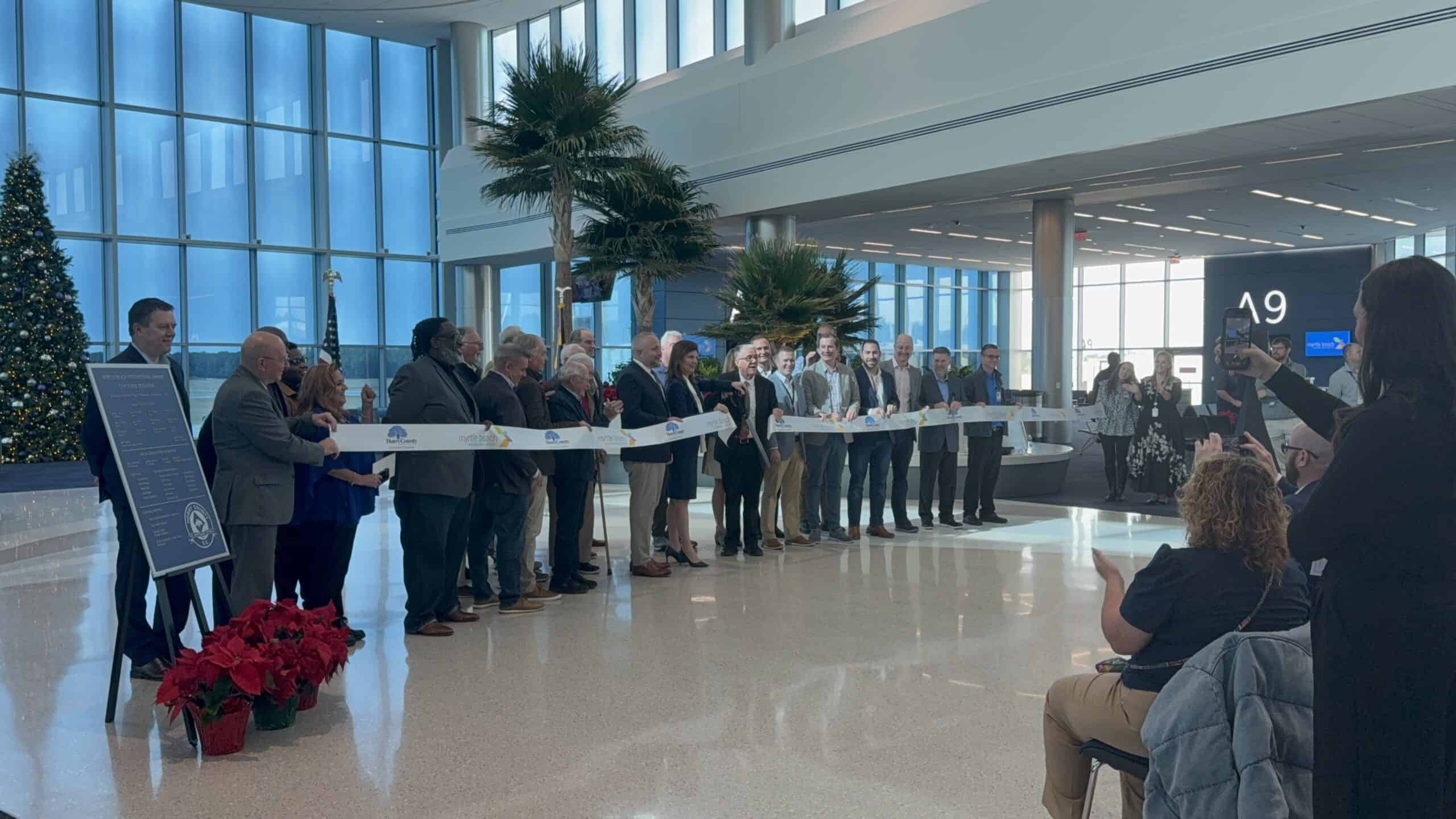 JE Dunn Construction is honored and privileged to announce the completion of the Myrtle Beach Airport concourse expansion project, a joint venture with Southside Constructors, Inc. The team celebrated the occasion with a ribbon cutting ceremony on Monday, Dec. 1, welcoming elected officials from both state and local government. During the event, organizers unveiled an 18-inch commemorative plaque, recognizing JE Dunn and Southside as an “Additional Partner” in this transformative project.